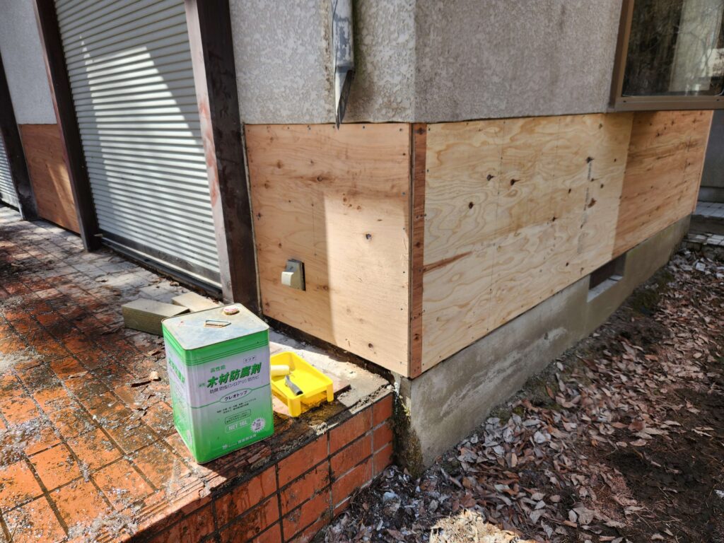 外部は、腐食が進んでいた部分を撤去し、構造部材の補強から着手。