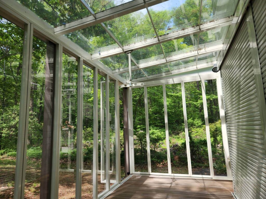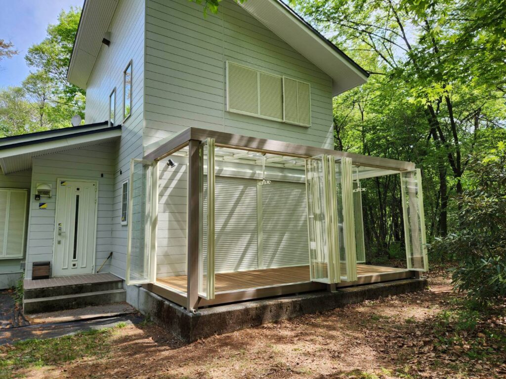 南向きの広さ約8畳のサンルームは、完成の頃には新緑に包まれ、これ以上ない心地よい空間に仕上がりました。
